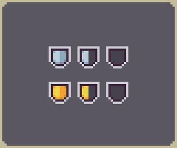Functional clean HUD elements for your game! These come with animated special effects to spice things up. Utilize them to create a juicy and responsive UI for your pixel-art game project.