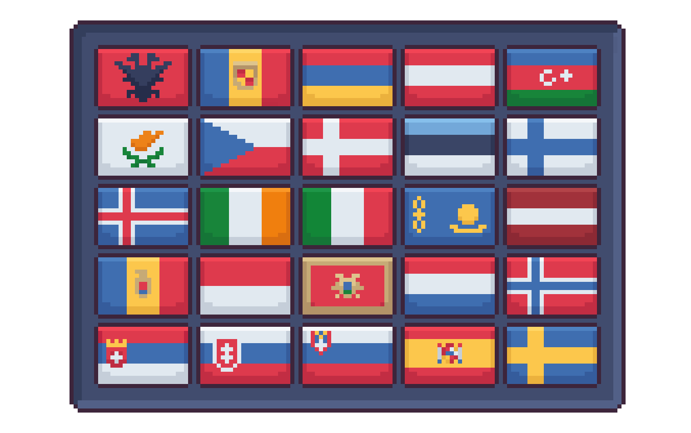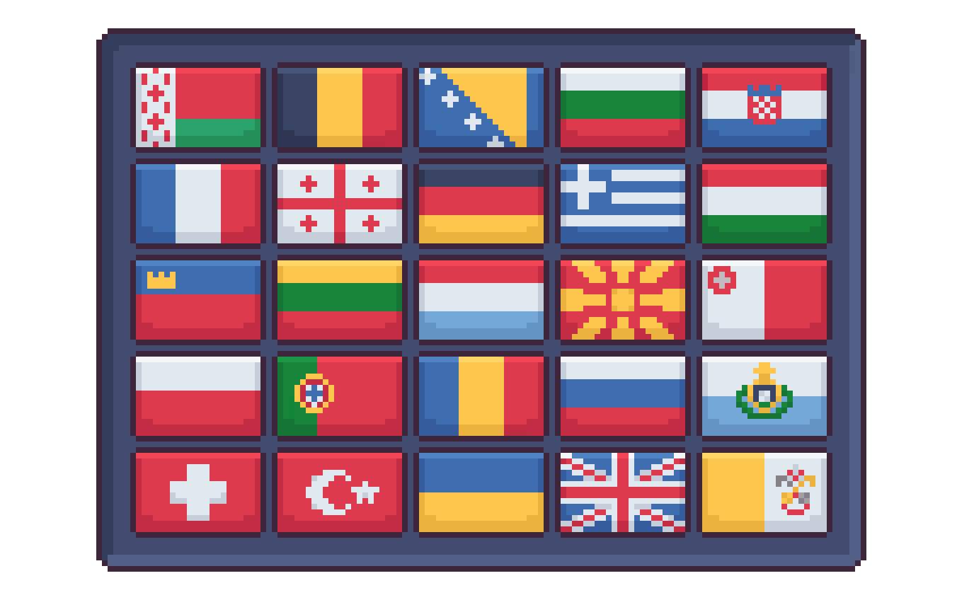 This free pack includes the flags of 50 European Countries. These flags can be used as buttons in language & location selection interfaces or even factions in a strategy game gui.